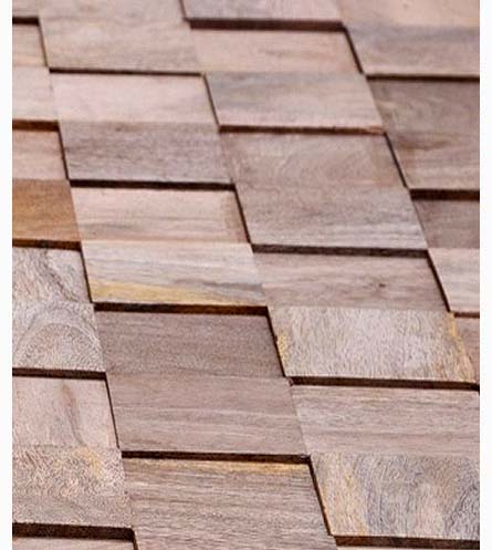 It is a rough textured wood square pattern knitted with random square wooden cube.
