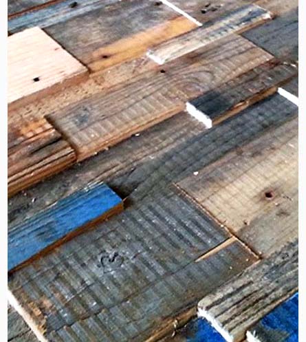 It is a rough textured wood square pattern knitted with random square wooden cube.